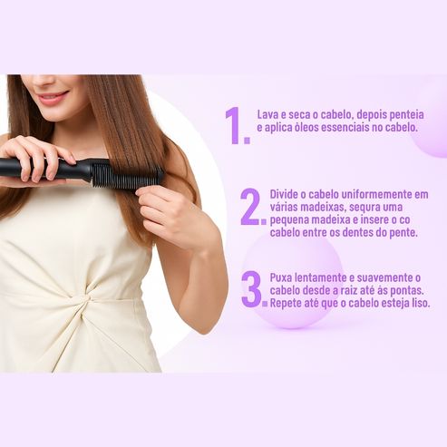 O nosso pente alisador 3 em 1 é a solução definitiva para obter um alisamento perfeito em minutos e no conforto da sua casa!