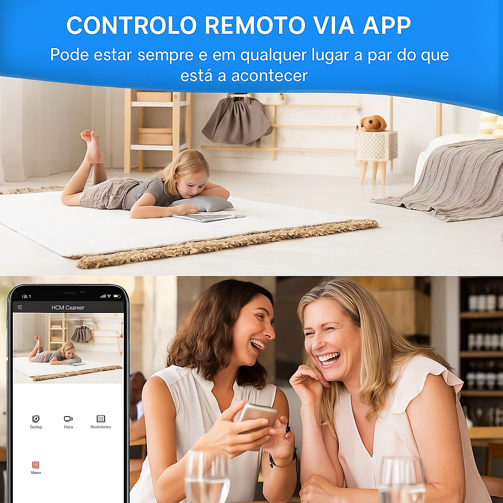 - Funções: Vídeo, foto, áudio, deteção de movimento, visualização ao vivo por WiFi